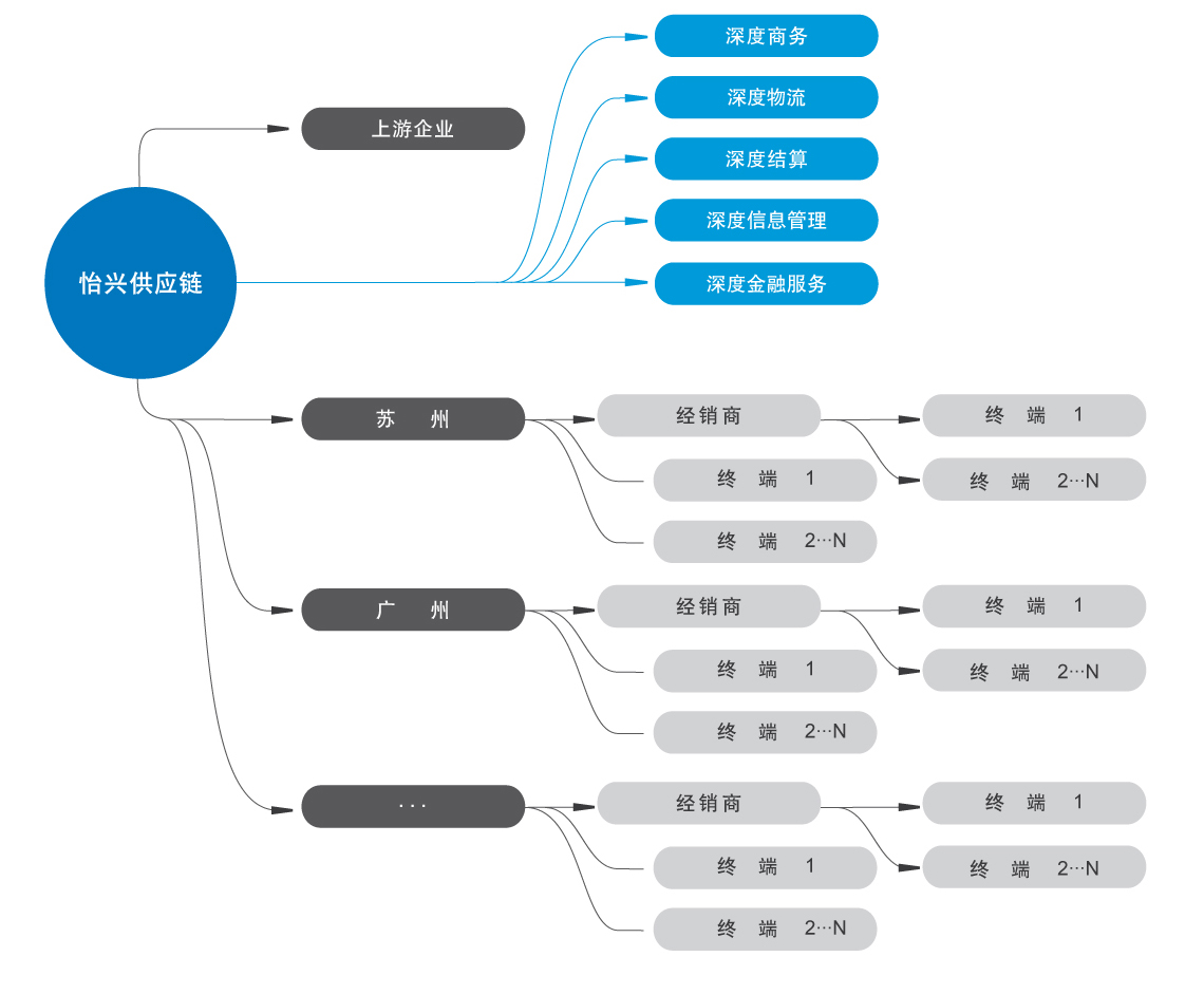 服务内容: 1)垫付货款(资金代收付、资金回笼、打包放款、分销应收款融资) 2)销售信息 3)财税管理 4)物流服务(全国分拨、干线运输、门店直送、仓储管理、组装和加工、退货和返修) 有怡兴供应链“协同”的企业,将在以下方面增强自身的优势竞争力: 1、对品牌商: 贸易执行服务将有效提升品牌营销商的销售总量、有效降低应收款及库存资金占用、有效促进品牌营销商利润率回流、使品牌商专注于其核心功能(如品牌建设、市场推广及销售)的建设。 2、对销售商: 贸易执行服务为销售商及终端用户提供了锁定销售量的库存,为降低采购成本提供了财务支持,减轻了销售商库存资金的占用,使销售商的资金实现更灵活运用。 3、品牌商与销售商:我们为品牌商、销售商与终端用户构建了全国性及区域性的、完善的物流网络(仓储配送中心与分中心),确保了销售商及品牌商在非核心领域的运作、使其专注于核心业务功能的建设。 最终为客户实现:扁平渠道层次,降低渠道库存,减少运营成本,扩大市场占有,提升利润率。